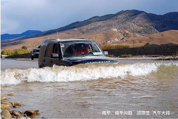 5、涉水時,保持油門穩定,勻速的,一鼓作氣開過去,儘量不要刹車,特別是水很深時。刹車容易在車頭處形成高於水面的浪頭,造成進氣口進水。