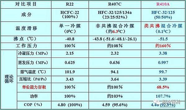 R410A的標準壓力的泡點溫度為-51.6°C,相變溫度滑移小於0.2°C,屬近共沸混合物,其熱力學性能十分接近單工質。