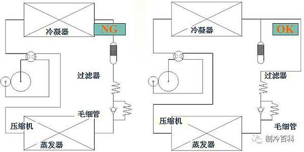 乾燥過濾器不要串聯在循環系統上,最好旁通在冷凝器出口。